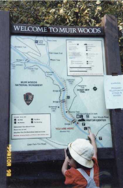 ミュア・ウッズ国定公園は、近所にも関わらず、都会の雑踏を忘れさせる深い森林で、行きはトレイルの道幅が広く、森林浴を楽しみながら気楽に散歩できるが、帰りは絶壁の横壁を伝う狭いトレイルを通らねばならず、子連れには少々ハードだった。(私は後半ずっと子供をおんぶしていたので)