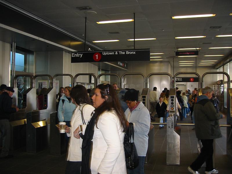 電車内は無愛想な黒人が多く、嫌な雰囲気。無意識の内に身構えてしまう。駅名のアナウンスやホーム内の案内表示がわかりやすいの で、乗り過ごすことはなさそう。そうこうしていると、サウスフェリー(South Ferry)駅へ行く人はチャンバー通り(Chambers St)駅で乗り換えて下さいとアナウンスされる。