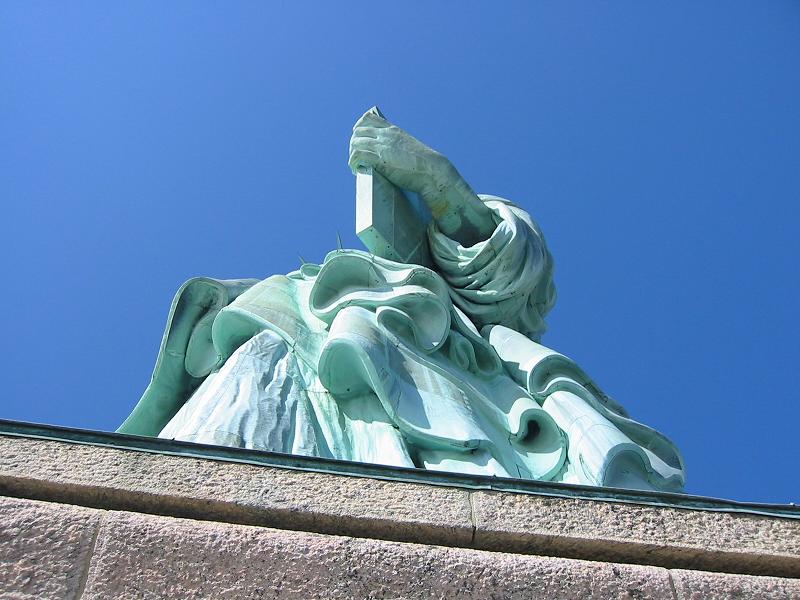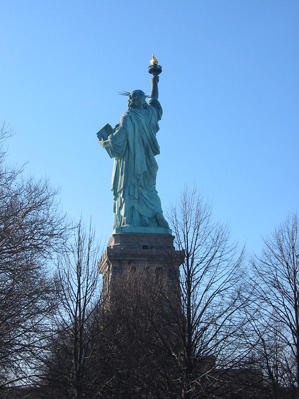 8:50、自由の女 神着。マンハッタン、自由の女神(の背中)の 写真を撮った後、博物館に入場する行列に並ぶ。5分ほど待った後、さらに厳重な手荷物検査を受ける。半導体工場のクリーンルームに入るときの機械に似たも ので、全身スキャンをかけられる。時間がないので、博物館の展示は素通りして、展望台へダッシュ。自由の女神(の足元)の写真を撮った後、いい眺め だなあ、と感慨に浸っていたら、なんとマンハッタンへ戻るフェリーがもうすぐ停泊しようとしている。あのフェリーに乗らなければ!とダッシュで階段を駆け 下り、フェリー乗り場へ向かう。おかげで、自由の女神(の正面)の写真を撮りそびれてしまった。