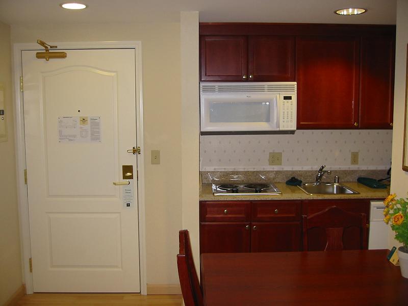 ローズビル(Roseville)での宿泊先、ホームウッド・スイーツ(Homewood Suites)へ到着。会社のディスカウントが効くはずで、インターネット予約後、日本から確認の電話を入れていたのだが、通じていなかったようだ。4人中1人だけディスカウントされ、3人の宿泊料金が通常料金のままだったので、その場でディスカウントしてもらった。