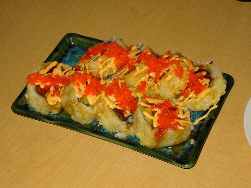 気になっていた仕事が無事完了し、ホッとしたところで、お相撲寿司(Osumo sushi)という日本食レストランで夕食。お店の雰囲気はエルセリート(El Cerrit)の刀屋風。メニューの表紙に力士の姿が描かれている。ロックンロール(Rock'n'Roll)という寿司を頼んだが、ド派手なカリフォルニア巻きといった感じでなかなかうまい。