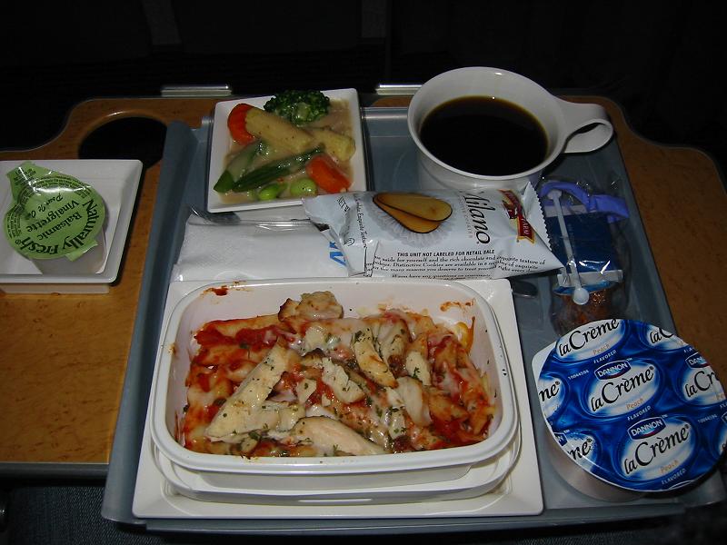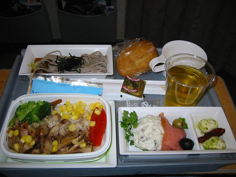 変更後の座席は、最前列の座席で、足が伸ばせて、しかも、となりが空席だったので、伸び伸びと過ごすことができた。機内サービスのビデオで、ベストヒットUSAの80年代ロック&ポップスのプロモーションビデオを満喫した後、ホリデーとロッキー・ザ・ファイナルの2本の映画を見て、一人感動していた。機内食(その3、その4)がうまい。