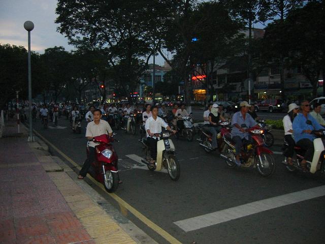 大事なお仕事を済ませた後、ホテルの部屋に戻って、ベッドに寝転がり、しばらく休憩。少し休んだら退屈してきたので、荷物をスーツケースに詰め込んでロックをかけ、個人行動開始。夕方になり、バイクの数が増えてきている。家族一家で3人乗り、4人乗りのバイクもいる。初めに、午前中に行った国営百貨店を見物。次に、マークマートを見物。かけ足だったため、購入意欲をそそられるようなものは見つからず。夕飯を食べる店を探したが、適当な店を見つけられず、17:30には日が沈んで暗くなってきたので、結局、ドンコイ通り近くのフォー24で本場のフォーを食べることにした。安くて早くて文句はないが、せっかく遠くまで来たのに味気ない気持ちになる。