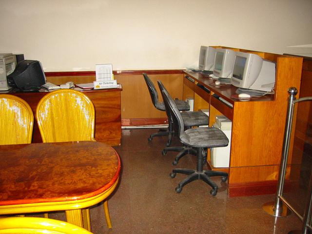 ベトナム料理はタイ、マレーシア、インドネシアの料理とは違い、あっさりした薄味で、日本人の味覚に合うと思っていたし、アメリカではベトナム料理屋で時々食事をしていたので、釈然としない思いでバイキングを早々に切り上げる。ホテルのフロントで「ビジネスセンターはどこですか?」と聞いたら、すぐとなりのPCが並んでいるコーナーのことだった。手持ちのノートPCを接続できるか聞いてみたら、ビジネスセンター中央のテーブルにノートPCを置いて好きに使って下さいと言われ、備え付けPCのLANケーブルを抜いてもらう。アオザイを着た担当の女の子がとてもかわいい。「ありがとう」と一言お礼を言う。ベトナムの公用語はベトナム語だが、英語がとても流暢。中途半端な日本語で話しかけられるより、簡単な英語で会話してもらった方が気分がいい。