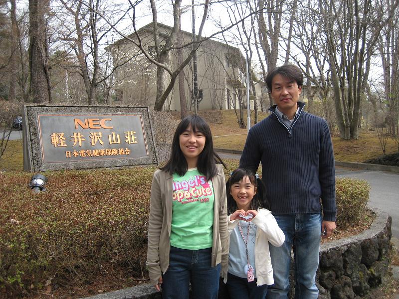 7:30から朝食。家族全員、腹いっぱい。朝食後、部屋を 片付けてから、チェックアウト。保養所の入口で記念撮影。