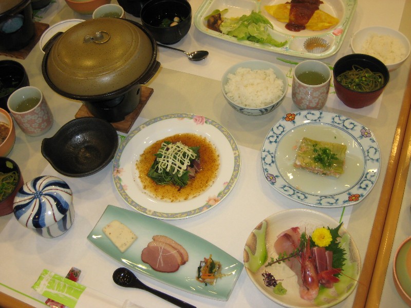 17:45から大浴場で汗を流した後、18:15から19:30まで夕食。毎度の如く、保養所の夕食(大人、小人) は腹いっぱい。