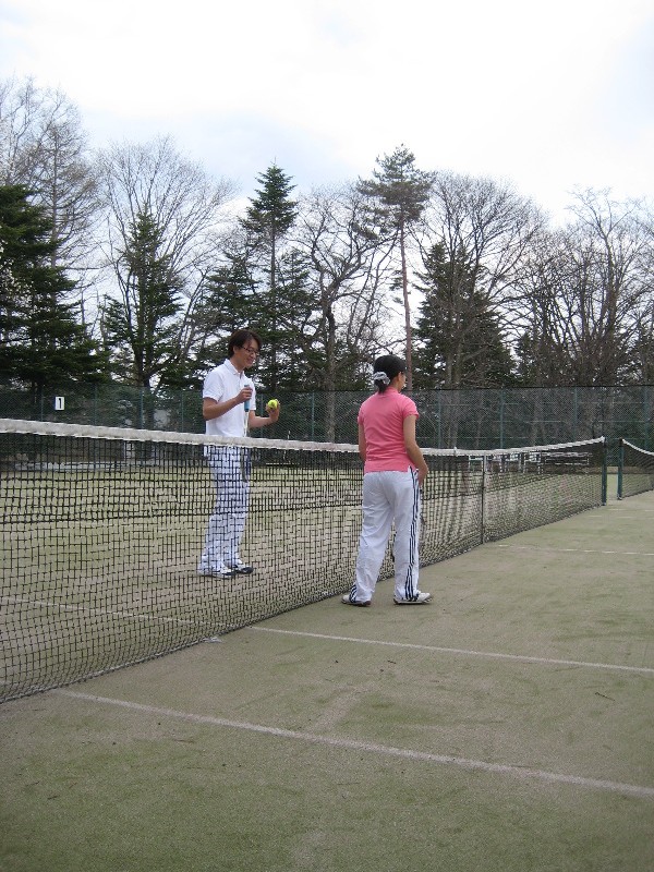 チェックインは15:00から。15:00から17:00までテニスコートを予約していたので、まず全員テニスウェアに着替え、周囲を散策して時間を 潰した。15:00ちょうどにフロントでチェックインを行い、荷物を部屋に運んでから、テニスコートへ移動。