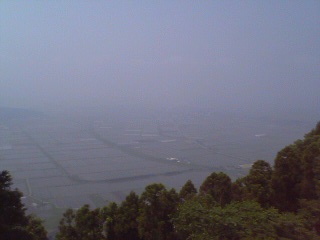 10:30、やまなみハイウェイ城山展望所に立ち寄る。わずかに霧がかかっていたが、素晴らしい眺め。