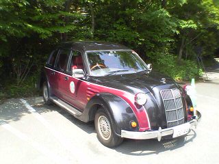 「山水木」の入り口近くの駐車場に、かっこいい社用車が停まっていた。センスがいいねえ。