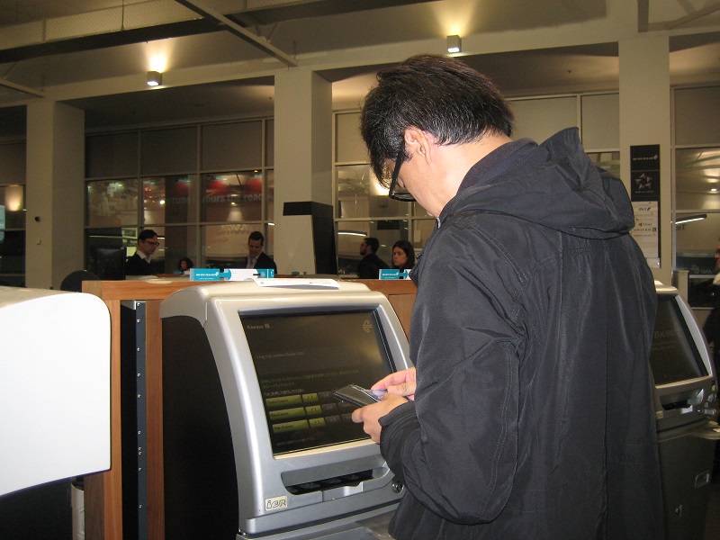 オークランド空港の国内線ターミナルでシャトルバスを下りる。チェックイン・カウンターの場所がわからず、右往左往してしまった。チャックイン手続きは すべてセルフ・サービス。チェックイン・カウンターの係員が指差す方向のベルト・コンベアに荷物を置いてきた。せめて荷物を預けるとこ ろには係員がいて欲しいなあと思った。