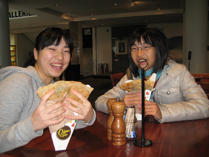 11:30頃、長女と再会! facebookでビデオ通話しているとはいえ、6ヶ月ぶりに家族4人揃った。長女のお勧めで、オタゴ博物館の外の屋台で ク レープを購入。ウエリントン本店の「Crepes a GoGo」というクレープ屋。あとオタゴ博物館内のカフェでホット・チョコレートを購入。