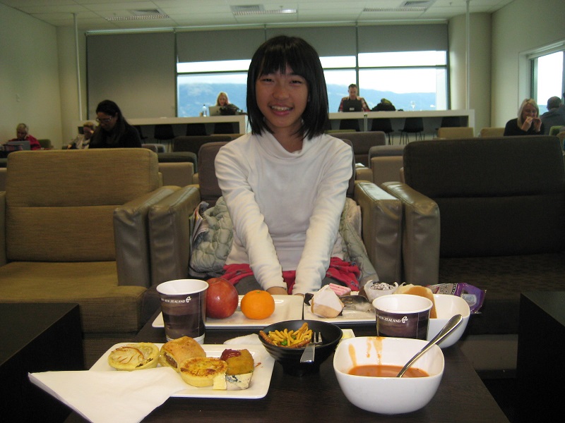 妻が上着とお土産を含め、荷造りし直した後、セルフ・サービスでチェックイン手続きを行う。空港内の売店で次女がお土産を購入した後、ラウンジで早めの