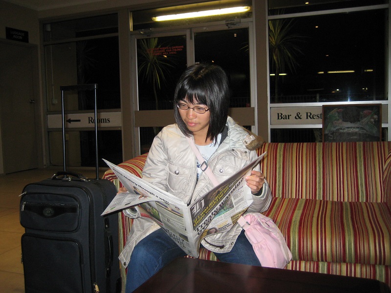 オークランド空港の国際線ターミナルで無料送迎バスを下りる。チェックイン・カウンターをすぐに見つけ、チャックイン手続きを行う。セルフ・サービスだ