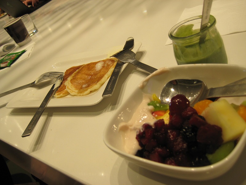 出国審査を通過後、ラウンジへ移動。朝食をたらふく食べる。