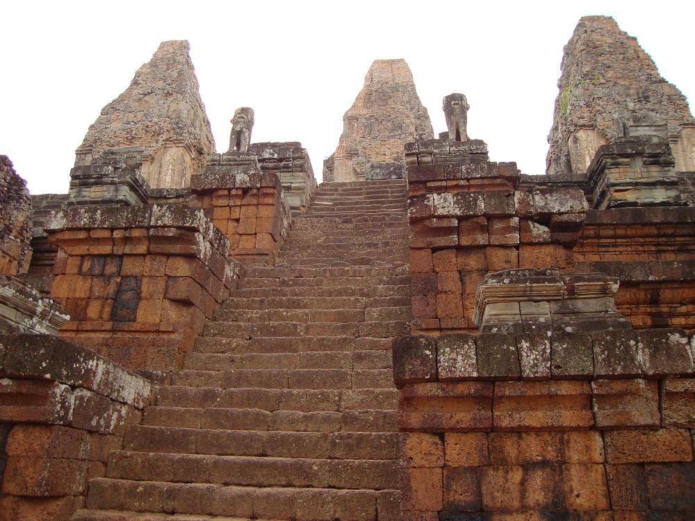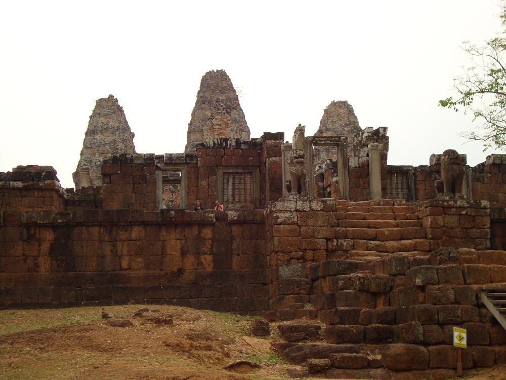 東メボンに到着。東メボンの遺跡は道路に面していて、トゥクトゥクに乗っているときから、3つの塔が見える。東塔門前でトゥクトゥクを下り る。そして、炎天下の中、一気に階段を駆け上がる。周囲の観光客が所々で休んでいるが、同じような順番で遺跡巡りをしているため、だんだん顔馴染みになっ てきた。観光客は、圧倒的に欧米人が多く、アジア人は少ない。ある人は、スロバキアから来たと話していた。日本人、中国人、韓国人は、アンコール・ワット とアンコール・トムしか行かないのだろうか。
