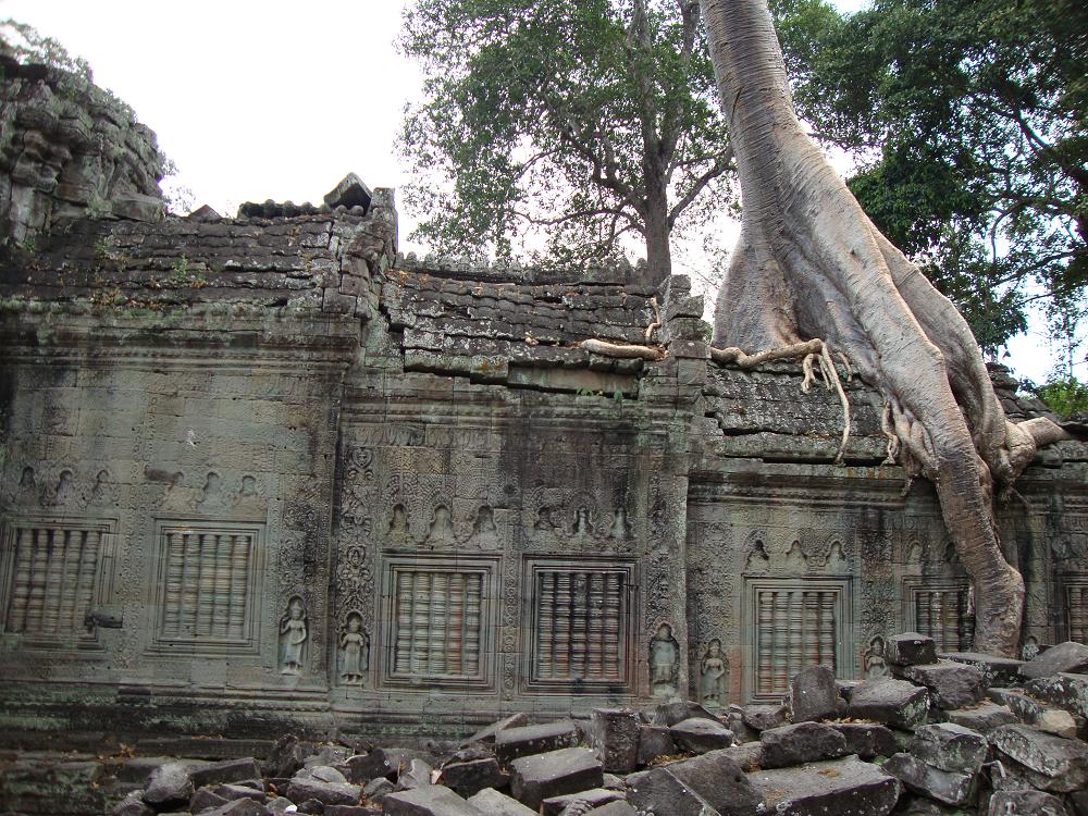 昨日、アンコール・トムとアンコール・ワットと比較すると、周辺の遺跡が見劣りしたため、今日の行き先にはほとんど期待していなかったのだが、プリア・ カンに踏み込んだときから、よい意味で期待が裏切られ、トンレサップ湖で曇った気持ちが徐々に晴れてきた。