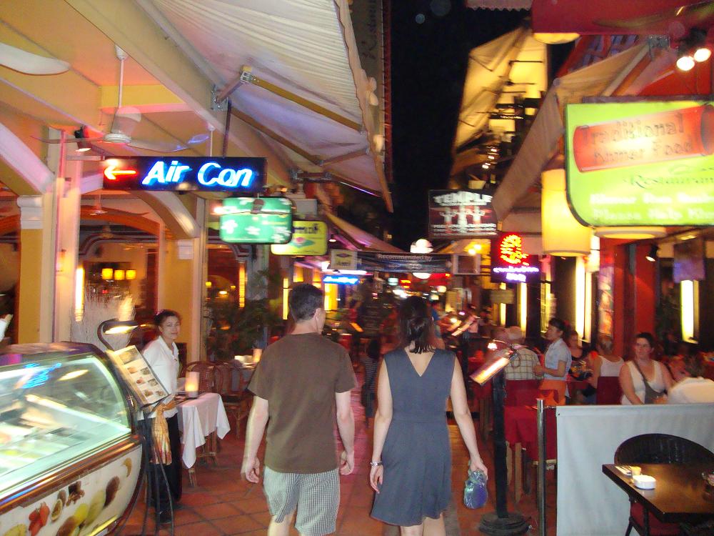 レッド・ピアノを出た後、オールド・マーケット、屋台村、パブ・ストリートをぶらぶら散歩した。オールド・マーケットで、お土産を探してみたが、あまり欲しいものが ない印象。屋台村は、外国人観光客で、非常に混雑している。パブ・ストリートの他の店に比べて半値ぐらいだが、日本人が食べて大丈夫かどうかわからないの で、店に入ることを躊躇していたら、日本人観光客の集団が食事をしている姿を発見。明日、チャレンジしてみようと考え直した。いずれにしても、明日たっぷ り時間があるから、今日は早々にホテルへ戻ることに する。