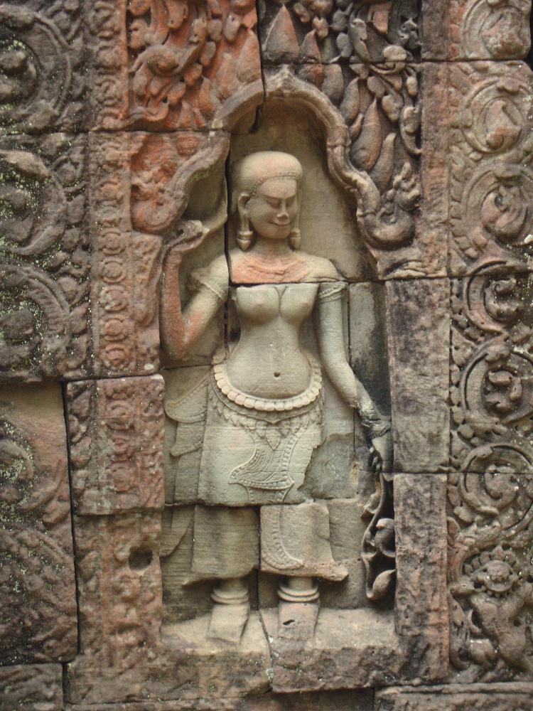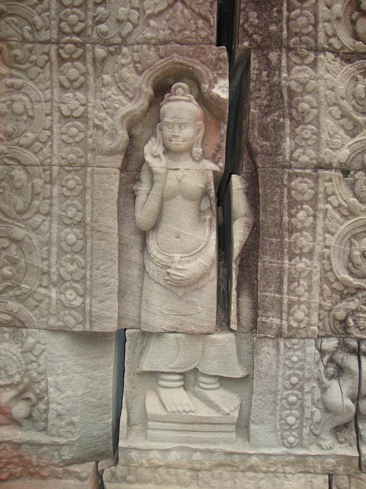 タ・ソムは小さい遺跡だが、デバダーのバラエティが豊富で、様々な表情をしていることが印象的。地球の歩き方に記載されている耳たぶをもつデバダー、美しいデバダー、髪の毛をしば るデバダーを見つけた。しかし、タ・ソムでは、遺跡の崩壊が進んでいて、石組みが徐々にずれてきていて、デバダーのひび割れが目立つ。ここまま遺 跡を放置していると、完全に崩壊してしまい、この姿を見られなくなってしまう。