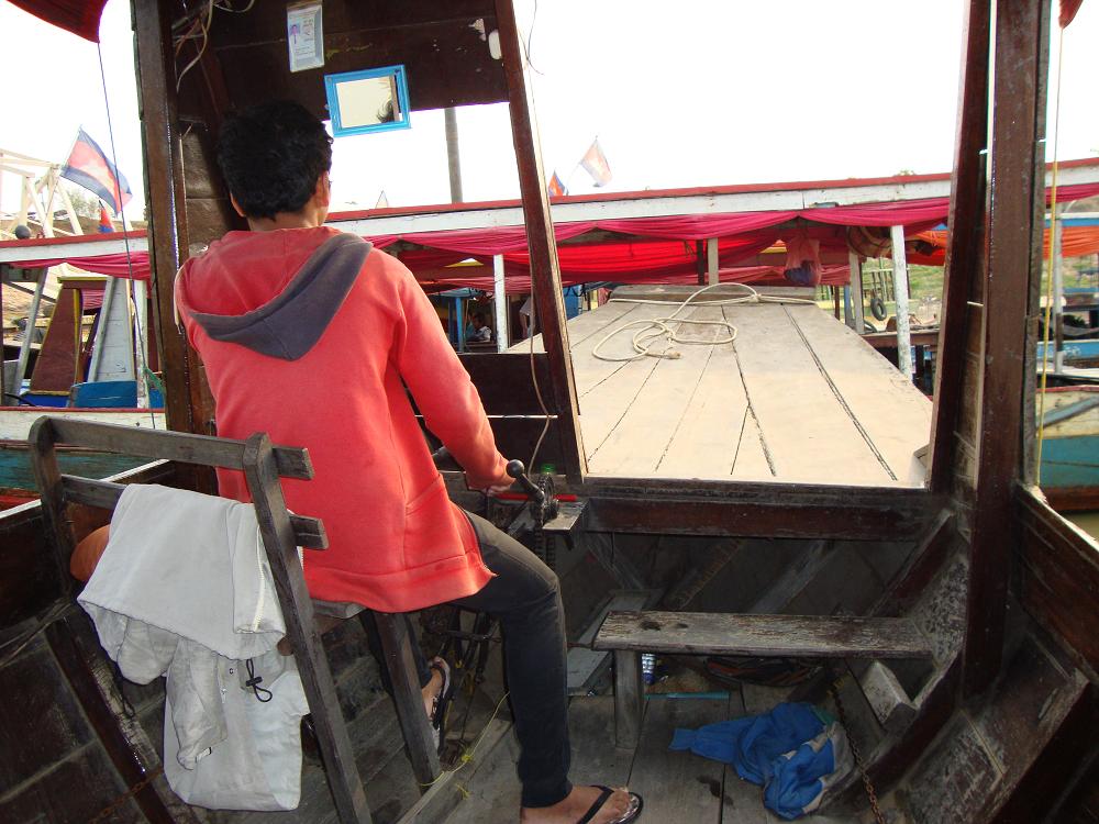 ガイドは、お金が全然落ちてこないので、この辺りでかなり不満げな表情を見せ始める。水上学校を出発した後、ガイドが「次に水上レストランに立ち寄るこ とになってい る」と言うので、「まだ朝食を食べたばかりで、お腹がすいていない。通過して欲しい」と要求した。それ 以降、エンジン全開でスピードを上げて、トンレサップ湖岸へ引き返す。