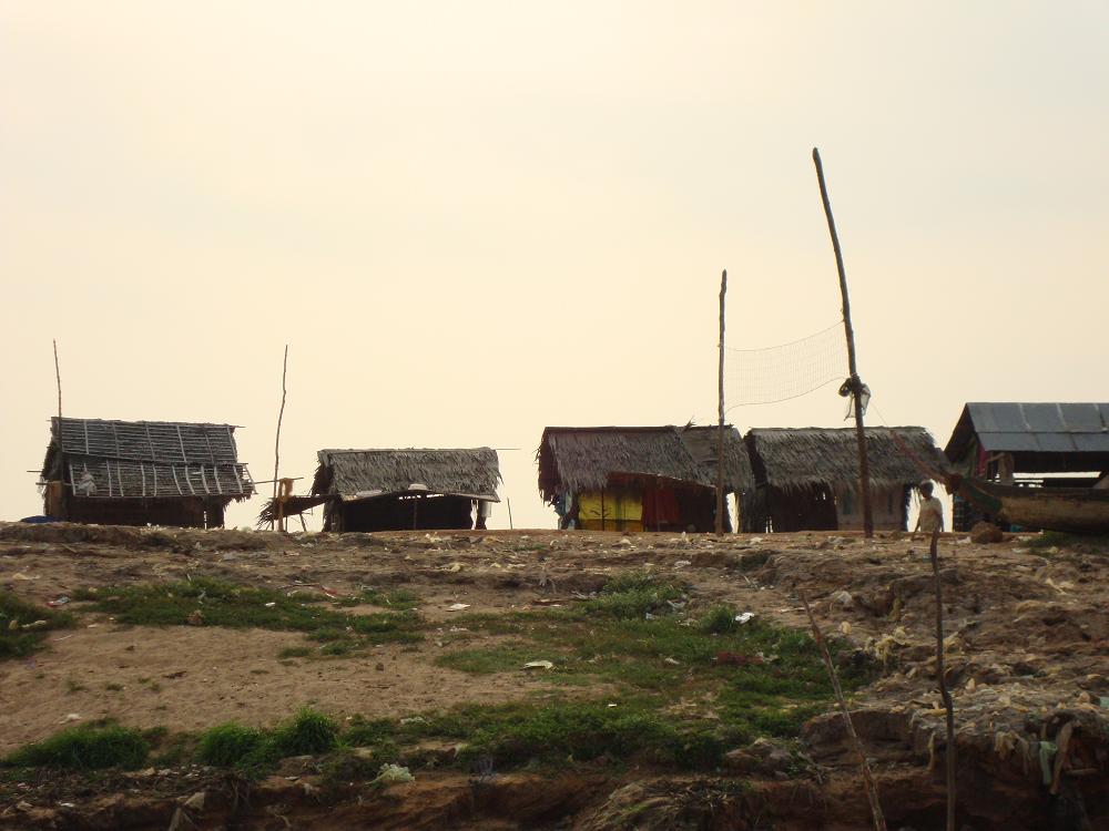シェムリアップ市街を南下すると、町並みが一変し、いわゆる住宅街となる。平日の朝ということもあり、通勤・通学途中の人た ちとすれ違う。トゥクトゥクで10分ほど揺られていると、住宅街を通り抜け、高床式の住居が目立つようになる。住居を支えている木がとても細く、洪水に なったら簡単に流されてしまうと思うのだが、大丈夫なのだろうか?
