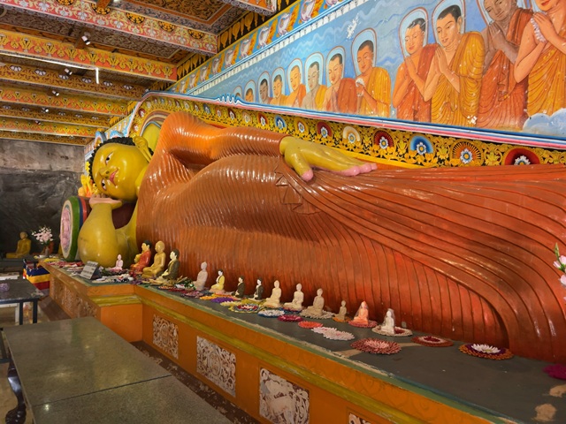 大きな一枚岩を彫って造られた本堂に涅槃像が横たわる。アヌラーダプラ全体の入場料とは別に、イスルムニヤ精舎だけは入場料がかかる。イスルムニヤ精