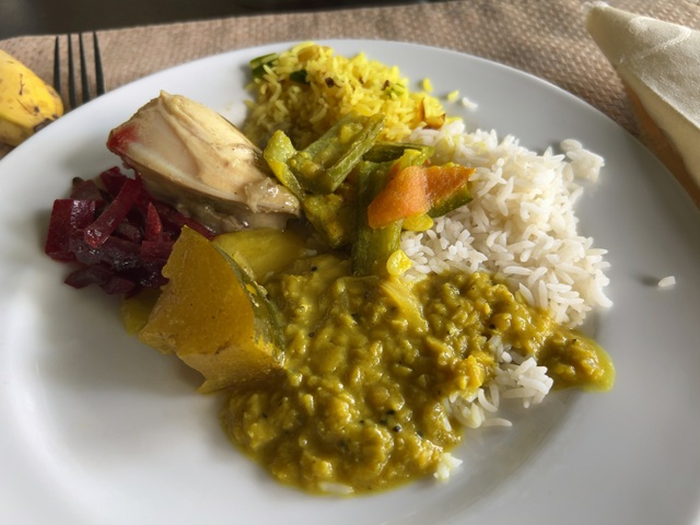 (スリランカのカレーとフルーツ)