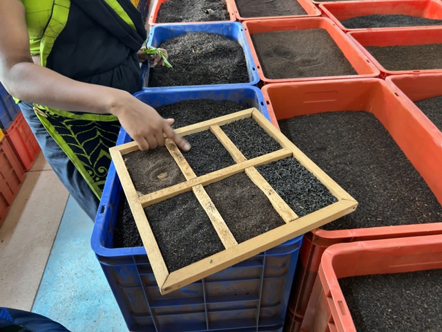 (茶葉を選別する)