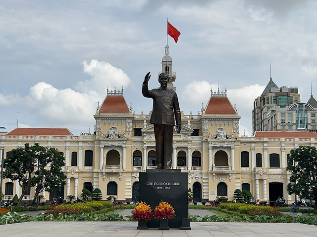 (ホーチミン像とホーチミン市人民委員会庁舎)