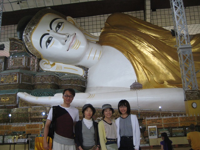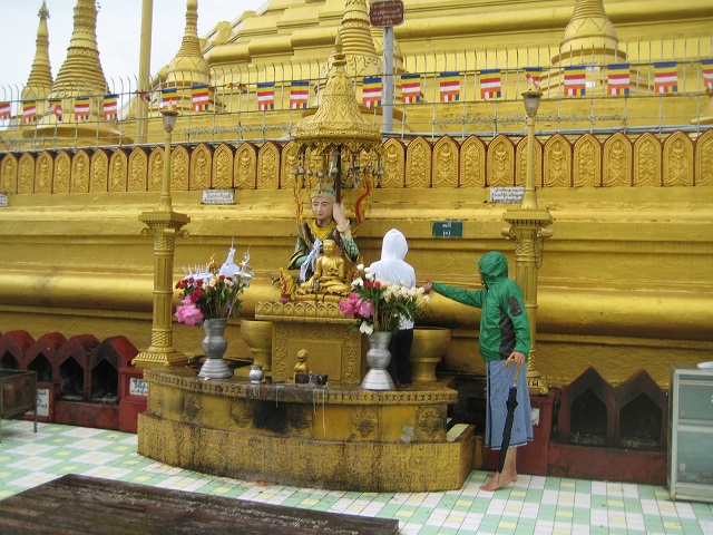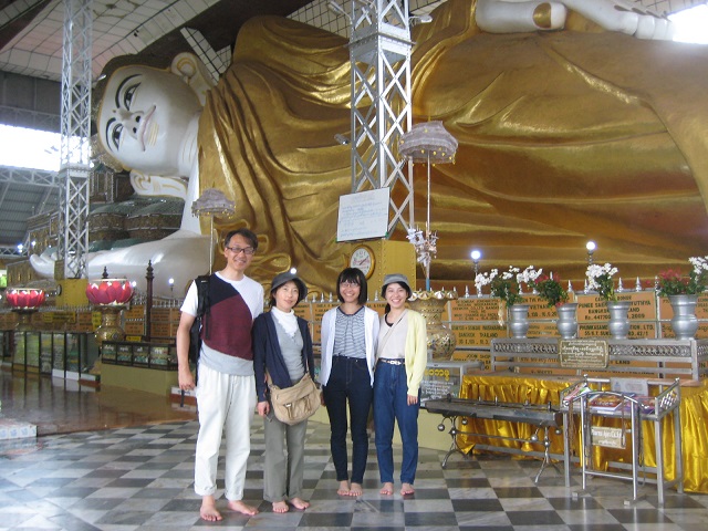 家族4人、誕生曜日毎に仏像に水をかけて参拝して回った。地球の歩き方には、自分の年齢だけ水をかけると書かれているが、ミャーさんから3回水をかけ下 さいと言われた。ミャンマーでは、水曜日が午前・午後に分かれていて8曜日ある。