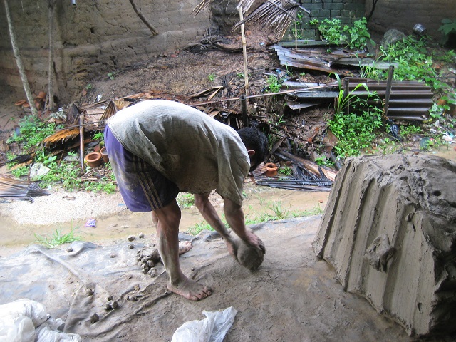 つぼ焼き集落に到着。路面がぬかるんでマイクロバスが途中までしか上れない。10mぐらい泥の中を歩く。妻が以前、陶芸をやっていたので、つぼ焼きを見 て、懐かしがっていた。